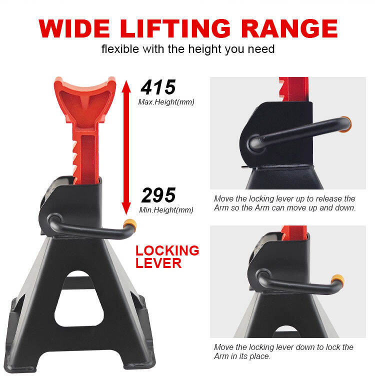 टायर बदलाव, ब्रेक काम, या अंडरकैरिज जाँच के लिए आदर्श, जैक स्टैंड पेशेवर मैकेनिक्स और DIY उत्साही लोगों के लिए आवश्यक है। हमेशा एक प्राथमिक उठाने वाले उपकरण (जैसे, हाइड्रोलिक जैक) के साथ जोड़ें और अधिकतम सुरक्षा के लिए भार रेटिंग का पालन करें।